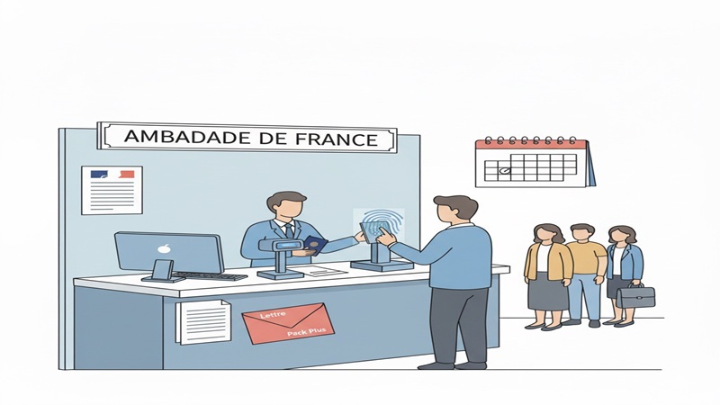ビザの申請は東京にあるフランス大使館に直接行って書類を提出しなくてはならず、郵送は受け付けられません。