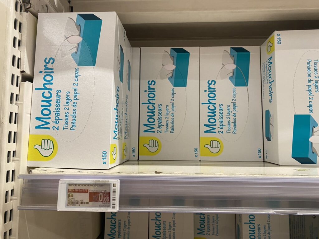 1箱0.65€です。日本に比べれば高額ですが、フランスでは最安だと思います。