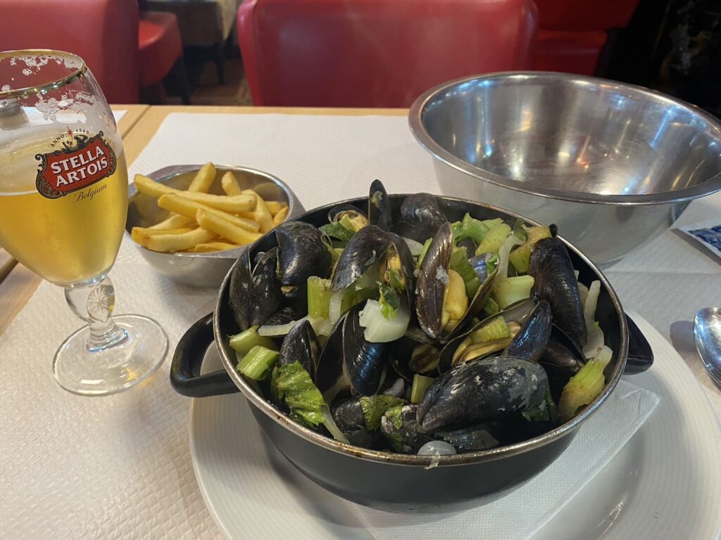 ムール貝はさっぱりとした味付けで、出汁が楽しめる味、鍋1杯がすぐ無くなりました。