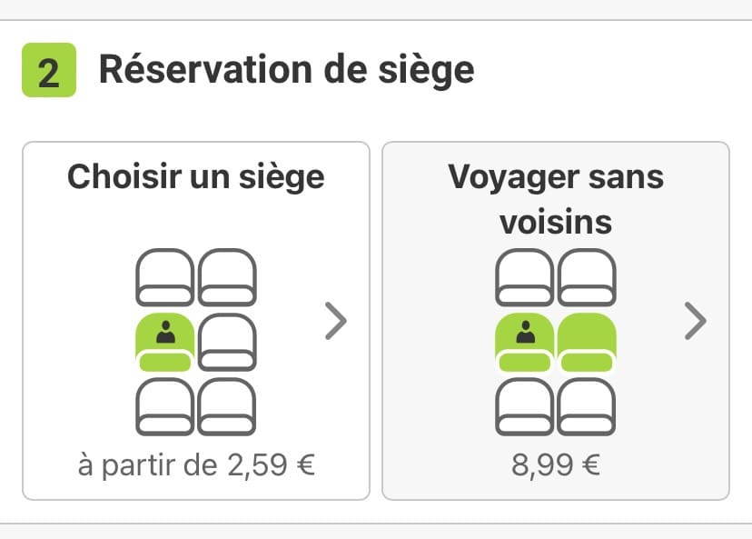 FlixBusは8.99€追加で隣の席を空席にすることができます。